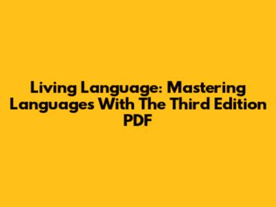 Living Language: Mastering Languages With The Third Edition PDF
