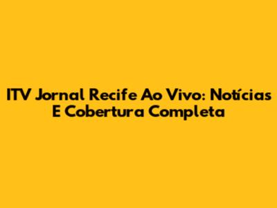 ITV Jornal Recife Ao Vivo: Notícias E Cobertura Completa