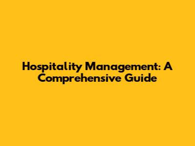 Hospitality Management: A Comprehensive Guide
