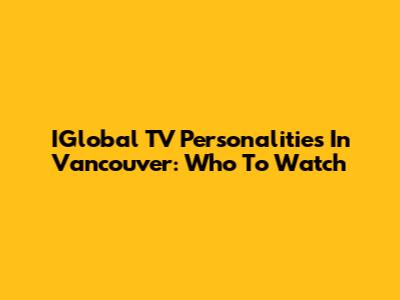 IGlobal TV Personalities In Vancouver: Who To Watch