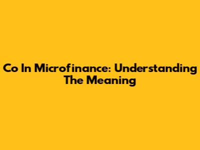 Co In Microfinance: Understanding The Meaning
