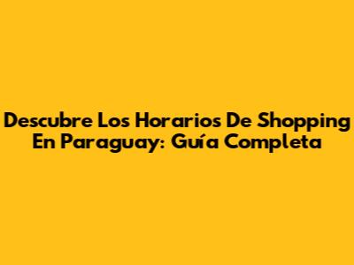 Descubre Los Horarios De Shopping En Paraguay: Guía Completa