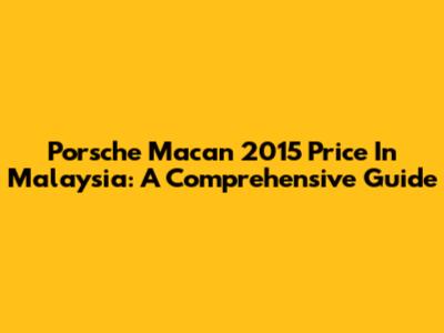 Porsche Macan 2015 Price In Malaysia: A Comprehensive Guide